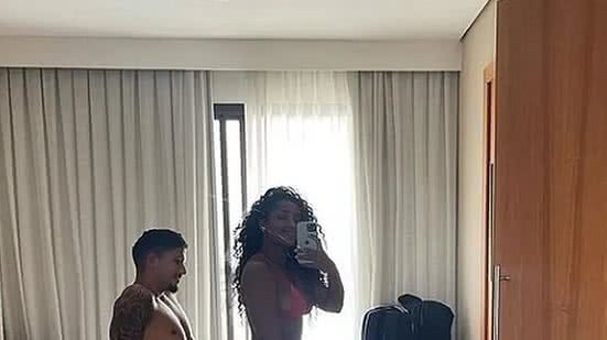 Na foto, o casal está no quarto, e Iza biquíni rosa, sentada no colo do atleta. Os dois sorriem para o clique feito no espelho. "ultimamente 🫀", escreveu na legenda. Seus seguidores reagiram.