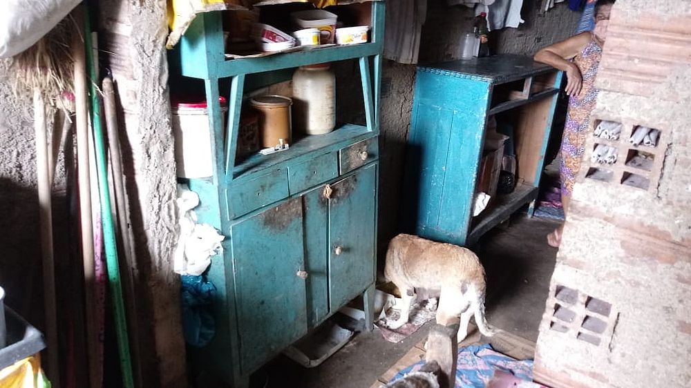 Já os gatos dificilmente passam o dia na casa. Segundo ela, os felinos têm uma boa relação com os cachorros e aparecem para comer e dormir. “Eu deixo a comida dos gatos na cozinha e eles já vão certos. A comida dos cachorros eu deixo no canto da sala e nos fundos. Eu não tenho condições de comprar pacote de ração para eles, sirvo o que consigo, hoje foi salame. A situação não é muito boa, não. Pago água, energia, o plano, o terreno do cemitério, também o mercado, que eu compro a feira. Quando eu pago todo mundo, não fico com uma prata de 10 centavos”, lamentou.