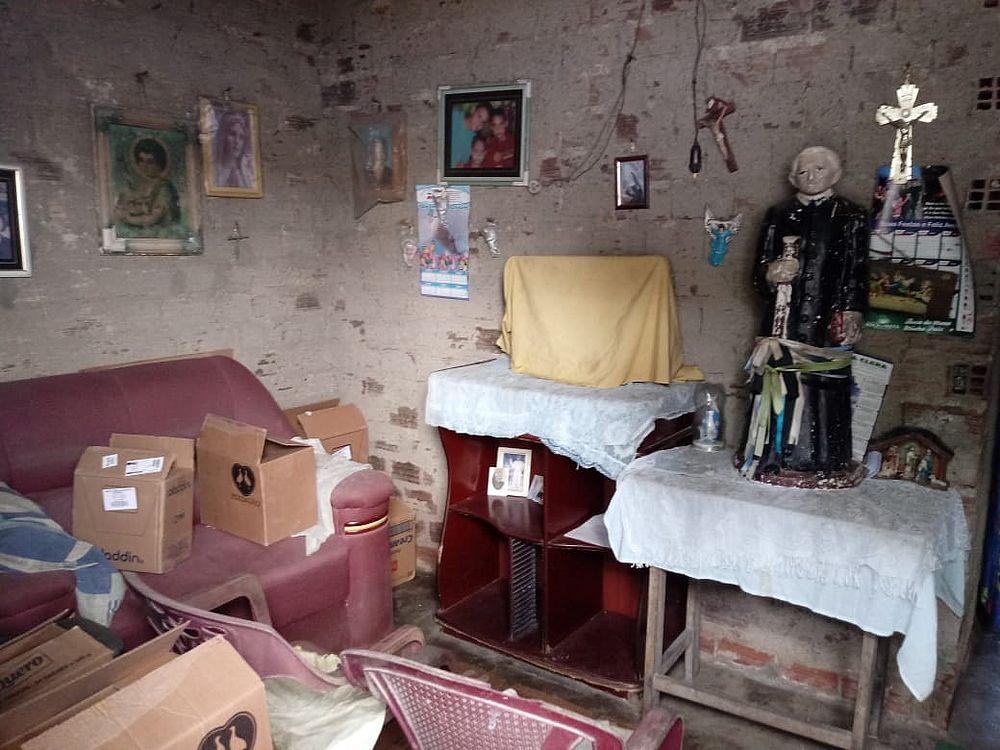 Alexandre relatou que a sala da casa, cômodo mais amplo destinado para receber visitas, se transformou no espaço para o descanso dos animais. Os tapetes e os pedaços de papelão que cobrem o chão servem de cama para os bichos, que se amontoam para escolher o melhor lugar para o cochilo. O sofá cor de rosa, duas cadeiras de plástico velhas, um móvel de madeira, e uma mesinha com a escultura do Padre Cícero, do qual dona Rita é devota, completam o cenário humilde.