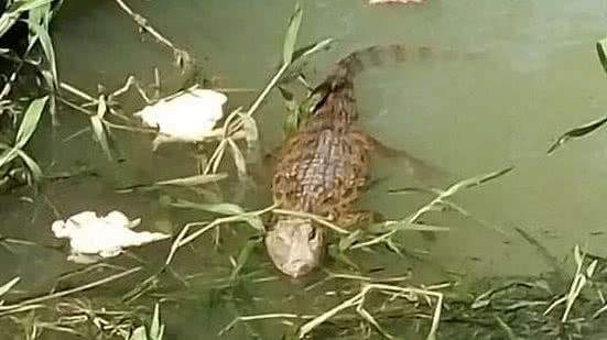 "Ele fica lá paradinho, como se estivesse tomando banho de sol. Eu mesma tirei uma foto dele, ontem [domingo], mas ele é visto por lá há umas duas semanas. Acho que é preciso tirar ele de lá pra levar para um lugar melhor", disse a técnica em enfermagem, Edvânia Maria Santos, se referindo às águas poluídas do córrego.