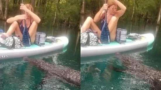 Uma mulher quase foi mordida por um jacaré enquanto praticava standu up com amigos na quarta-feira (8) em Ocala, no estado da Flórida (EUA).