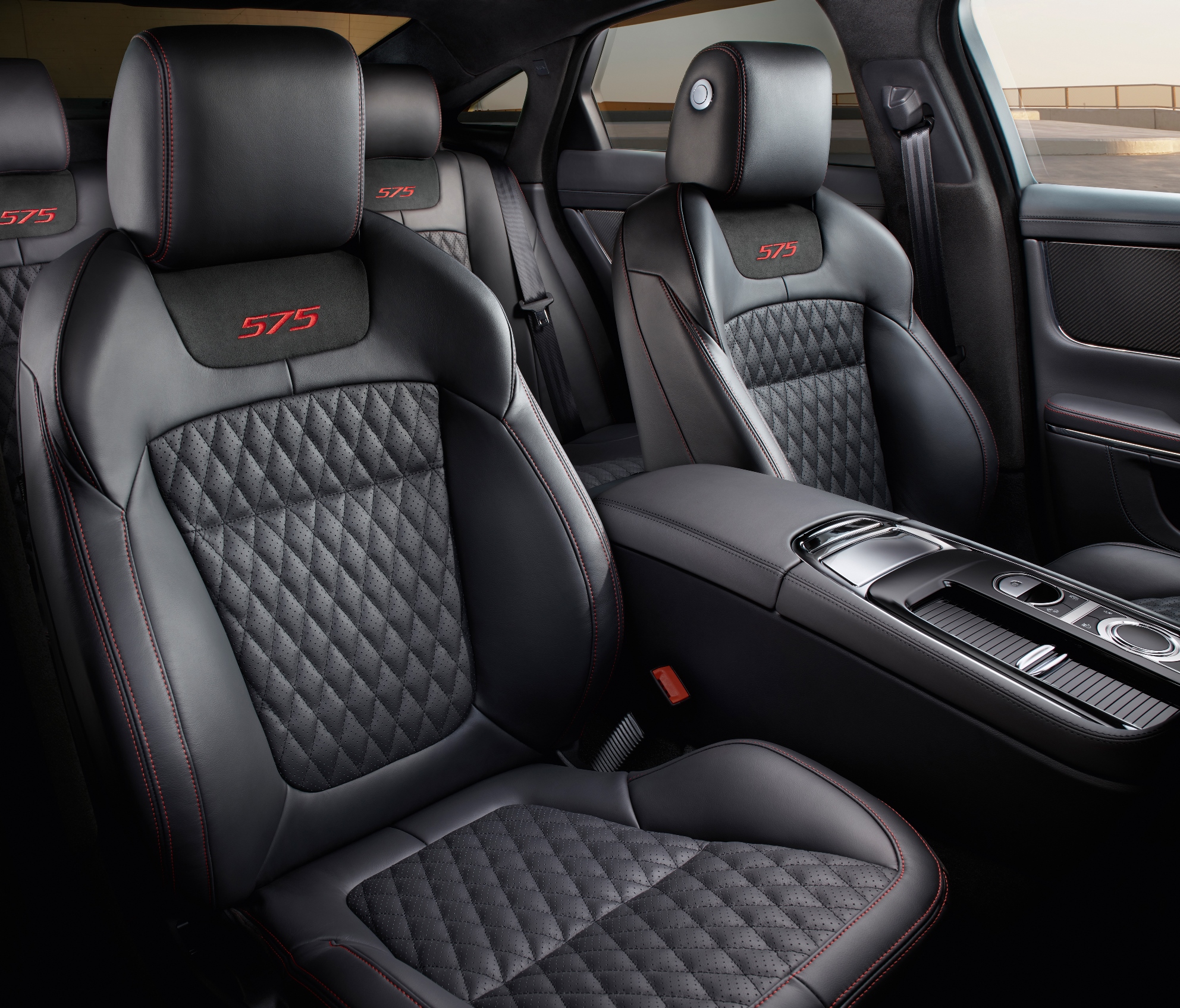 Se por fora o modelo tem um apelo bastante esportivo, por dentro esse aspecto fica ainda mais evidente com soleiras em alto relevo personalizadas para a versão, assim como as costuras dos bancos em couro, que fazem menção aos seus 575 cv de potência.