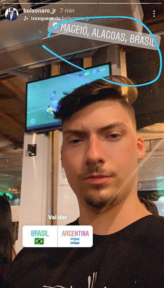 No mesmo registro compartilhado nos stories dele, o filho de Jair Bolsonaro mostrou um televisor ao fundo com a transmissão da partida e quis saber dos seguidores quem sairia vencedor, se Brasil ou Argentina. Com gol de Dí María, os "hermanos" levaram a melhor e colocaram um ponto final no jejum de 28 anos, conquistando o título em pleno Maracanã.