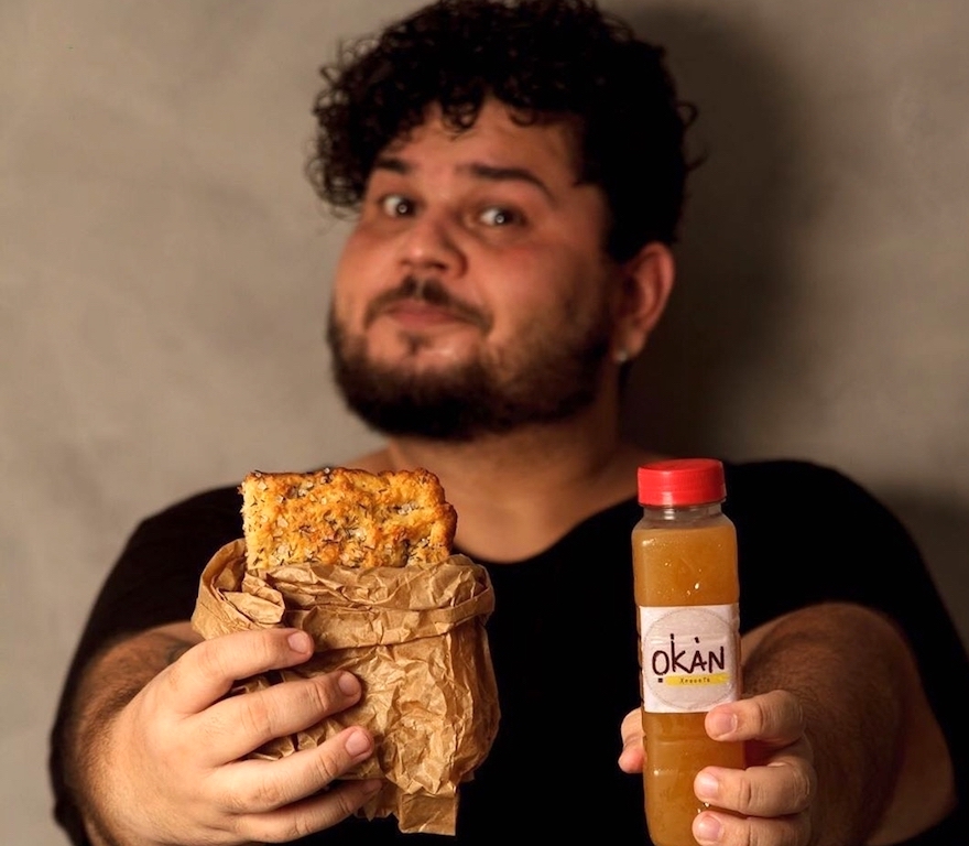 Agora a cozinha do Daniel é eclética e ele produz a foccacia de limão (fermentação natural). O pão com azeite e vinho é o casamento perfeito e com muito axé.