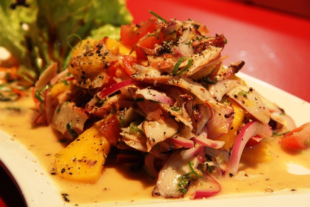 Manga – Inspirado no ceviche de polvo, mas não é peruano. Versão alagoana com manga e vinagrete de maracujá. Também vem com cebola roxa, tomate cereja e pimentão. Pouco ácido.