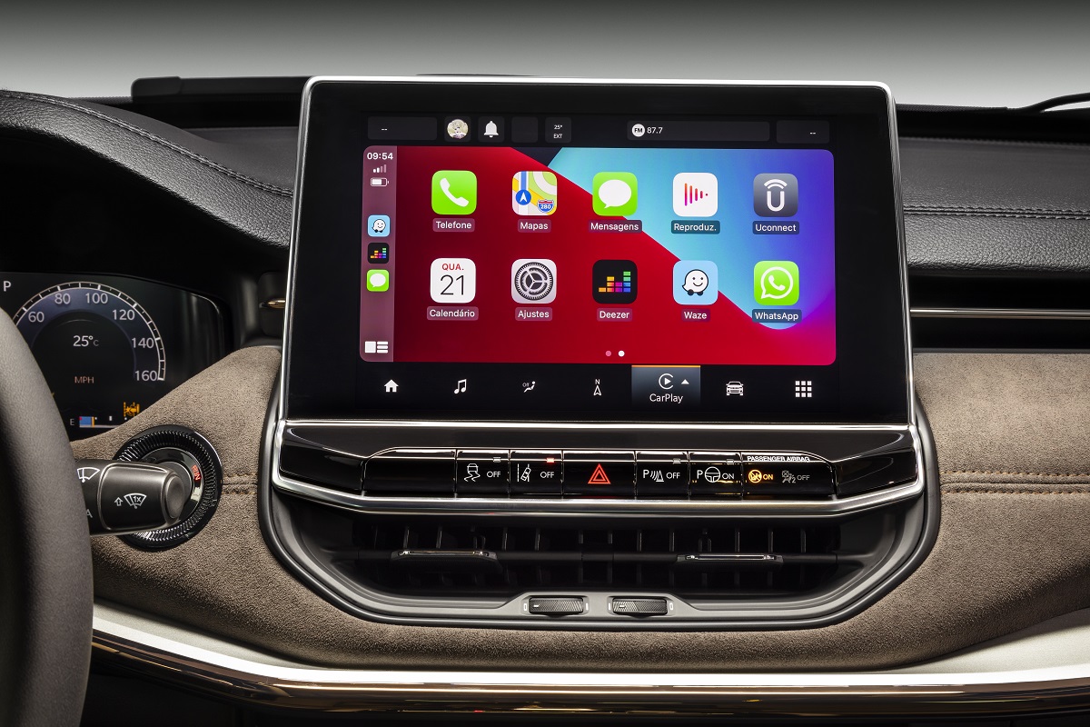 O Jeep Commander se destaca por trazer muita tecnologia de ponta. Vem com cluster Full Digital personalizável de 10,25” e central multimídia com tela touch de 10,1” Full HD com navegação embarcada e espelhamento para Apple Carplay e Android Auto por conexão sem fio.
