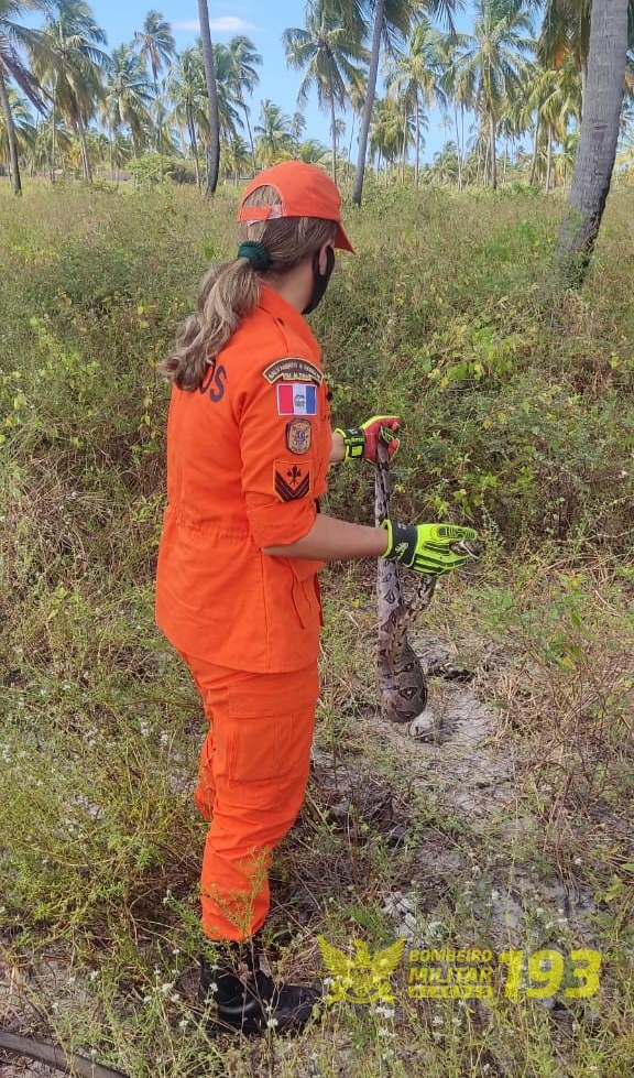 Uma cobra da espécie Jiboia foi capturada por bombeiros na manhã desta terça-feira, 12, dentro de uma residência em Porto de Pedras, no Litoral Norte de Alagoas.