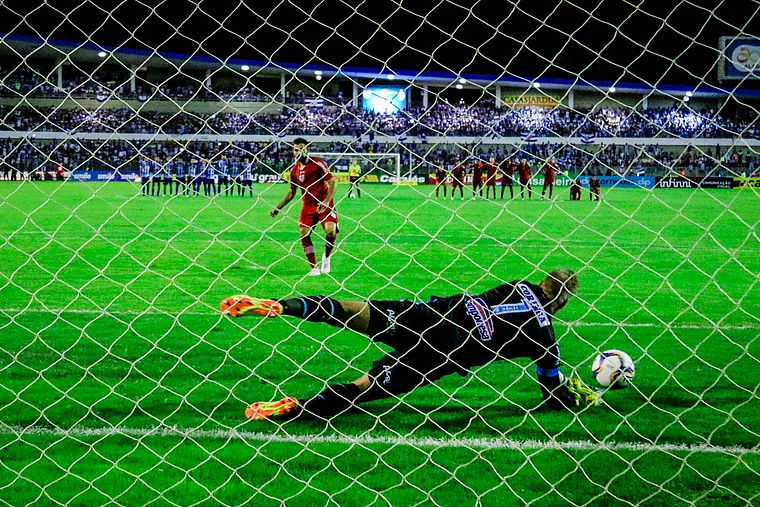 João Carlos vai no canto defender a penalidade (Foto: Pei Fon / TNH1)