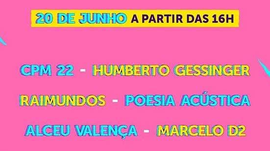 Alceu Valença, Poesia Acústica, Humberto Gessinger, Raimundos, Marcelo D2 e CPM22 serão as atrações do evento online, que será transmitido pelo canal do João Rock no YouTube, devido à pandemia do novo coronavírus. Ao todo, serão seis bandas, oito horas de show e tudo gratuitamente.