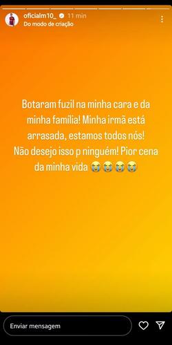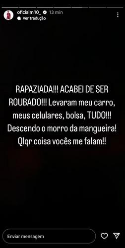 — Rapaziada! Acabei de ser roubado! Levaram meu carro, celulares, bolsa, tudo. Descendo o morro da Mangueira. Qualquer coisa vocês me falam — disse o meia em sua rede social.