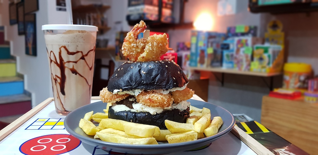 Hambúrguer com carne bovina e camarão empanado, um dos destaques da Lud House