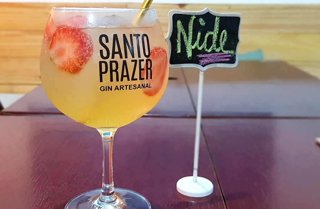 Os drinques da casa levam assinatura de Waldgelson, adorei o gin do Santo Prazer com água tônica, morango e maracujá. Também tem um preparado com licor Don Luiz, (de doce de leite) com sorvete de chocolate, Gin Santo Prazer e finalizado com paçoca, é legal para quem aprecia bebida bem docinha.