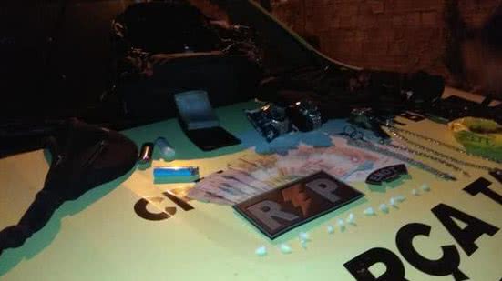 Além das facas, Tiago foi encontrado com uma capa de colete, duas pulseiras de prata, três relógios, uma corrente de prata, um saco de moedas, um celular, uma carteira, dois perfumes, uma pochete, 13 pedras de crack e R$170,00 em espécie.
