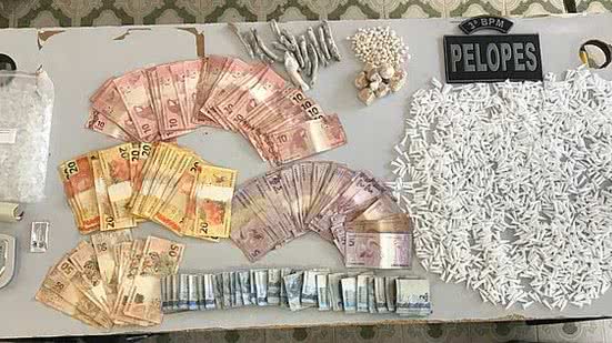 A dona da residência, que é mãe do jovem, falou com os militares e permitiu que eles fizessem uma busca na casa. No telhado, a polícia encontrou um pacote com maconha, crack, cocaína, material para embalagem e R$ 4.201,00 em espécie. Além disso, foram apreendidos um celular e uma balança de precisão.