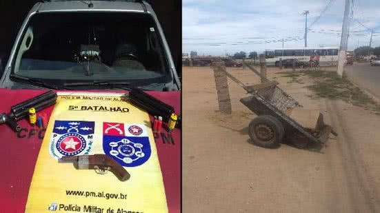 De acordo com informações da Secretaria de Segurança Pública (SSP/AL), policiais do 5º Batalhão da PM avistaram o jovem em atitude suspeita, e ele tentou fugir ao perceber a aproximação da guarnição. Na fuga, deixou o carro de mão para trás com duas espingardas calibre 12, de fabricação artesanal, um cabo de madeira, uma garrucha, duas granadas artesanais e oito munições intactas calibre 12.
