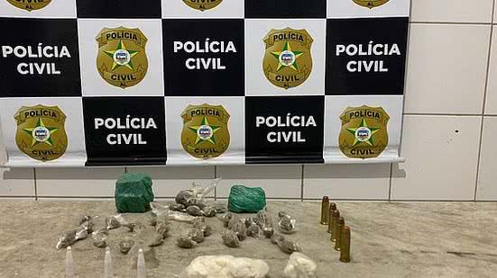 Com o jovem, segundo a Polícia Civil, foram apreendidos 85g de maconha, 12g de cocaína e cinco munições de calibre 38.