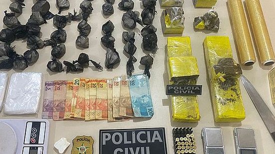 Assim, sob a determinação do delegado João Marcello, as equipes se dirigiram até a residência do suspeito, onde encontraram 2,8 kg de maconha em tabletes e outras frações, bem como 1,2 kg de cocaína, e 22 munições calibre 38, intactas.