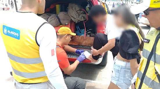 Agentes do Programa Ronda no Bairro prestaram os primeiros socorros a um jovem de 19 anos que se jogou, na manhã deste sábado, 16, em uma área perigosa no mar próximo ao Marco dos Corais, na praia de Ponta Verde, em Maceió.