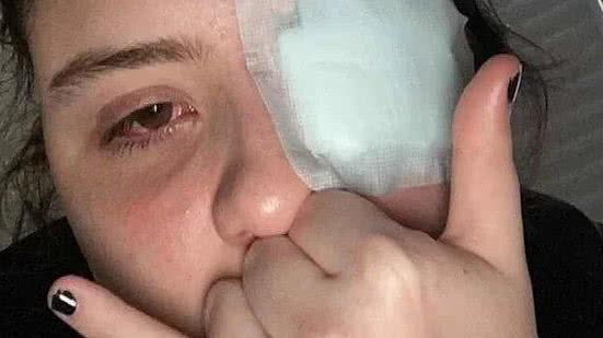 Como a dor e a ardência continuaram, o namorado a levou a uma farmácia, onde lavou os olhos com soro fisiológico.