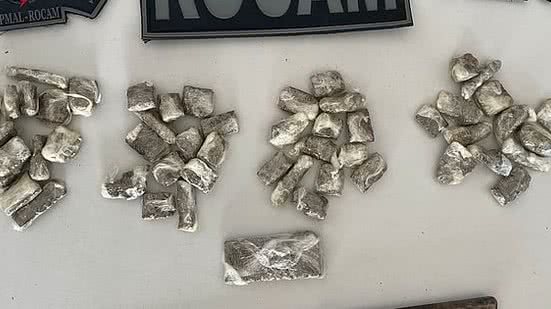 Segundo a polícia, mais de 50 bombinhas de maconha e uma faca peixeira foram apreendidas com o suposto traficante. Ele tinha acabado de vender R$ 70 em droga, numa transferência via Pix, para um usuário, que também foi detido pelos militares.