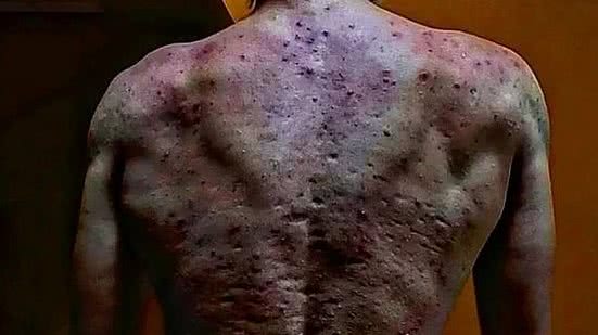 Um jovem de 20 anos desenvolveu uma quadro grave de acne na região das costas após usar esteroides anabolizantes para estimular a hipertrofia muscular.