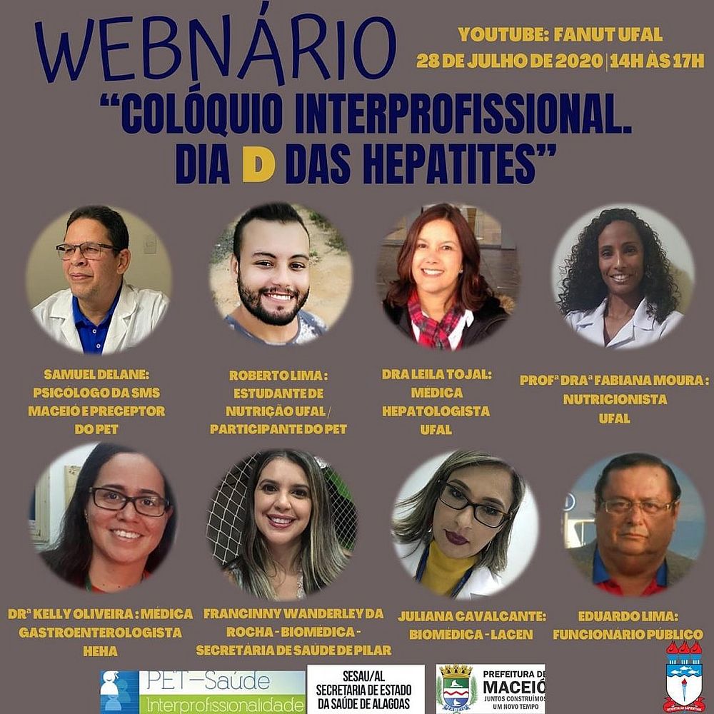 Com o objetivo de celebrar o Dia D de prevenção e combate às hepatites virais, a Secretaria Municipal de Saúde realiza um Webinário para profissionais e usuários. O evento acontece às 14h desta terça-feira (28) pelo Canal do Youtube da Faculdade de Nutrição (Fanut) da Universidade Federal de Alagoas (Ufal).