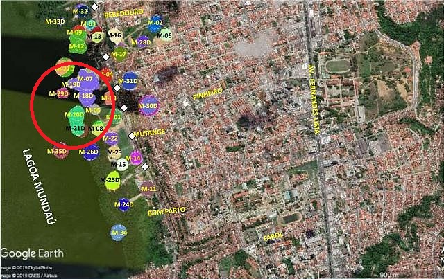 "A junção dessas duas minas formou uma cratera maior do que a formada na mina 18. O estudo, feito por um sonar, mostrou que ela tem 120 metros de altura, 96 metros de largura e está a cerca de 768 metros de profundidade. Ela está localizada sob a Lagoa Mundaú, bem próxima da cavidade 18", explicou o coordenador.