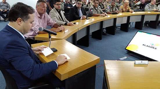 O governador Renan Filho e o secretário de Estado da Segurança Pública (SSP), coronel Lima Júnior, apresentaram, na manhã desta terça-feira (9), os índices das ocorrências criminais registradas no primeiro semestre de 2019. O balanço é positivo e considerado histórico. A apresentação reuniu a imprensa e toda a cúpula da SSP no auditório Aqualtune do Palácio República dos Palmares.