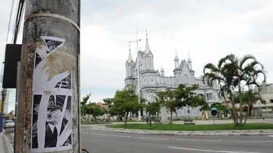 Os cartazes, que tinham a inscrição "Heróis não morrem. Parabéns Führer", apareceram no Centro de Itajaí no dia 20 de abril. O material era assinado por uma entidade chamada White Front - frente branca – que, para o Ministério Público de Santa Catarina, é um grupo extremista.