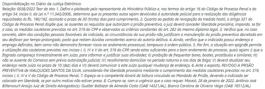 Confira na íntegra a decisão publicada hoje no Diário de Justiça Eletrônico: