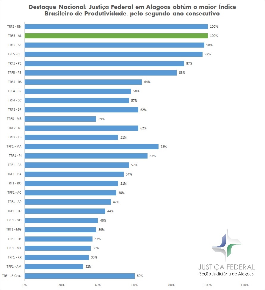 As Seções Judiciárias de Alagoas e do Rio Grande do Norte, que alcançaram o Índice Máximo de Produtividade Comparada (IPC-Jus) na avaliação do Conselho Nacional de Justiça, também apresentaram os maiores índices de produtividade dos magistrados e servidores do país, tendo cada magistrado federal alagoano proferido, em média, 5.146 sentenças, seguido pelos juízes federais potiguares, que produziram, em média, 3.734 sentenças no ano de 2017.