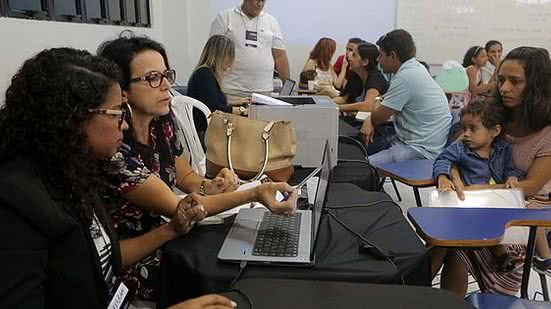O juiz André Gêda, coordenador da Itinerante, conduz a atividade. A população recebe auxílio da Defensoria Pública para abrir os processos, que também têm a participação do Ministério Público.