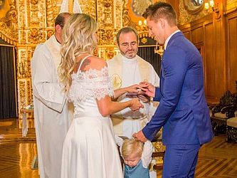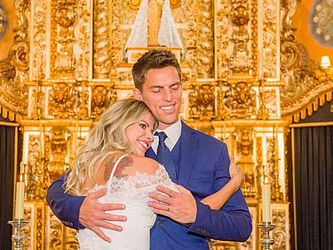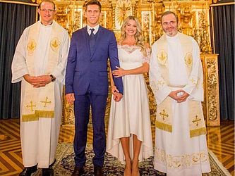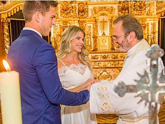 Karina Bacchi dividiu com os seguidores nesta quinta-feira (13) fotos do casamento religioso e civil com Amaury Nunes. A oficialização aconteceu na igreja Nossa Senhora do Brasil, em São Paulo, antes da realizada em Barra de São Miguel, em Alagoas, no fim de novembro. Nos cliques, os noivos aparecem com familiares e amigos íntimos, indicando ter se tratado de uma cerimônia discreta. "Sim! Devidamente abençoados. Deus é maravilhoso... preparou tudo mais especial do que sonhei a vida toda... Obrigada Padre Michelino Roberto por celebrar e abençoar nossa união diante de Deus e obrigada também Antonio Dubena por estar mais uma vez presente co-celebrando", escreveu a apresentadora, que curtiu a lua de mel no estado nordestino.