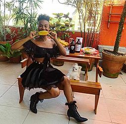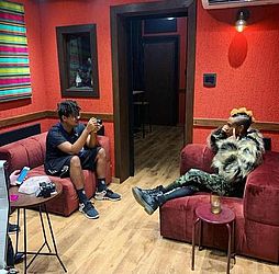 O imóvel serve de locação para muitas fotos de Karol e ainda de home office. Ela montou um estúdio no apê, com decoração moderna, piso laminado, poltronas vermelhas, pufes de couro e painéis bem coloridos.