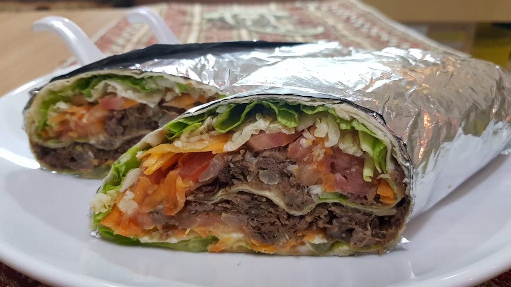 Sanduíche de carne de sol no pão árabe enrolado