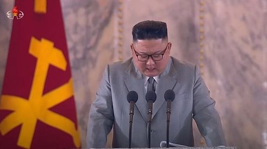 Kim chegou a retirar os óculos para secar as lágrimas. Civis e militares também se emocionaram e choraram ao ouvir as palavras do líder do país.
