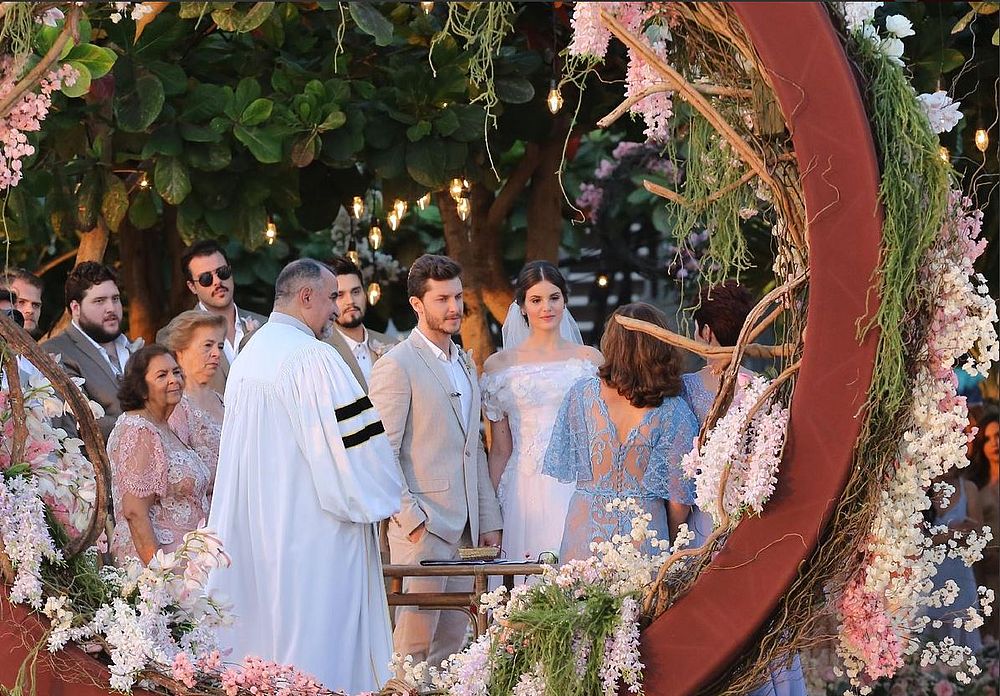 A cor também esteve presente nos vestidos das madrinhas, como Cássia Kiss, Antonia Morais, Drica Moraes e Vanessa Giácomo. Para acompanhá-las, estavam padrinhos como Luan Santana e Joaquim Lopes.