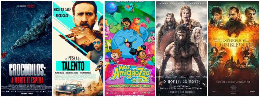 No cinema da Cruz das Almas a felicidade de 6 lançamentos, entre ação, drama e terror, estão os filmes: O peso do talento, A médium, Crocodilos: A Morte te Espera, Águas selvagens, O homem do Norte e Meu amigãozão. Além das estreias, continua em cartaz os filmes de ficção, ‘Animais Fantásticos: Os Segredos de Dumbledore', ‘Doutor Estranho e Sonic 2’.Confira todos os filmes e todas as sessões.