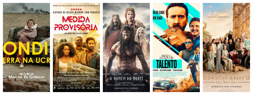 A semana tem ainda outras estreias. 'O homem do Norte’, que conta a história de vingança de um príncipe nórdico, depois do assassinato de seu pai. Além dele, o filme ‘O Peso do Talento’ narra a história de Cage, um homem insatisfeito com sua carreira, que inesperadamente será recrutado pela CIA e viverá o inesperado. O filme ‘Águas Selvagens’ também de ação, fala do investigador Lúcio Gualtieri (Roberto Birindelli) aceita um trabalho para solucionar um crime cometido na fronteira entre Brasil, Argentina e Paraguai, ele se vê perseguido por uma organização criminosa.