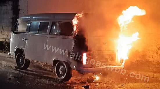 Uma Kombi pegou fogo no início da noite desta segunda-feira (11) perto do Fórum Desembargador Moura Castro, Centro de São Miguel dos Campos.