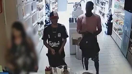 No vídeo é possível observar que um dos criminosos se aproxima do balcão desejando "boa tarde" para a funcionária para só depois anunciar o assalto. O caso ocorreu na tarde desta segunda-feira (17), às 13h26. Na cena, é possível observar que há três mulheres na loja quando os assaltantes invadem. Duas delas estão sentadas atrás do balcão.