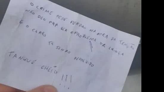 Uma amiga da família viu o carro na rua e informou a polícia. E ao verificarem o veículo, os oficiais encontraram um bilhete deixado pelo assaltante para a mãe da criança com um pedido de desculpas e o tanque do veículo cheio de combustível.