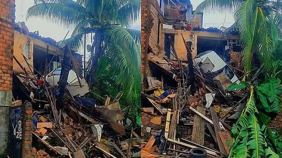 Imagens gravadas por um morador da região mostram parte dos destroços na pista após o desmoronamento. No vídeo, também dá para perceber o veículo de cor branca com risco de queda. O automóvel estaria parado na área que seria destinada para garagem. Chovia no momento do desabamento.