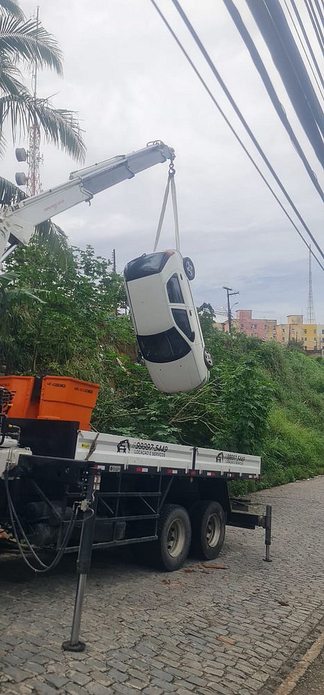 De acordo com informações do Corpo de Bombeiros, em apoio a Defesa Civil, os militares realizaram a amarração para a retirada do veiculo do local de risco.