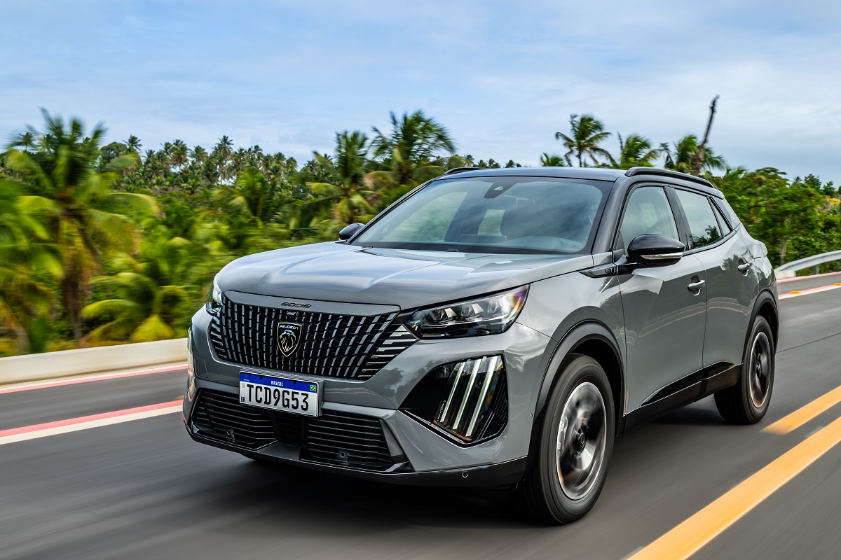 A nomenclatura 2008 está estampada na porção traseira do veículo, em nova grafia. Já a configuração 100% elétrica conta com a aplicação da letra “E” em azul e branco, antes da identificação do modelo.