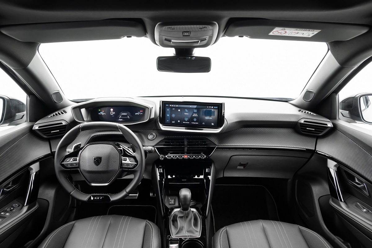 Há, ainda, elementos exclusivos para as versões GT, como pedais esportivos e soleira PEUGEOT em alumínio, tapetes com bordado GT e costura verde em detalhes internos e painéis de porta.