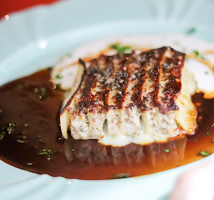 O chef Roberto Macias (@robertomaciasneto), o Beto do Piccola Villa (@piccola.villa), logo diz: “Eu não criei a lasanheta”. Verdade, mas a do Beto é um sonho de consumo que a gente não esquece. Então vamos entender essa história: a massa é uma das marcas registradas do chef italiano Salvatore Loi, a ‘lasanha deitada’. A massa é recheada com ragú de fraldinha e recebe dois molhos, o bechamel (com queijo muçarela e fonduta de grana padano) e demi-glace, finalizado com trufa negra. Mas antes de ganhar os molhos, vai na chapa, e por fim ao forno. É a melhor invenção do mundo!