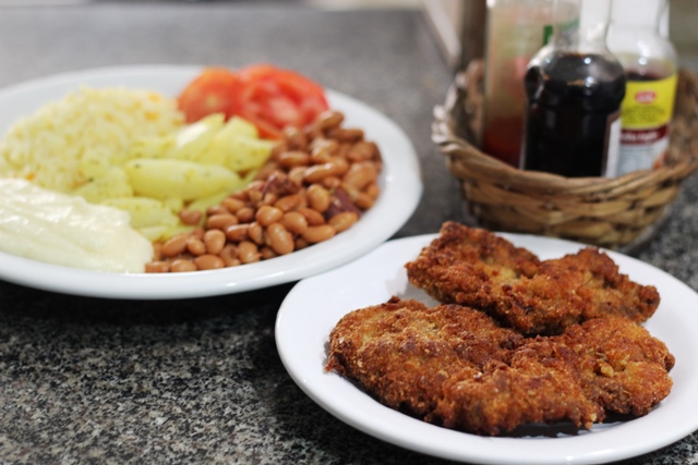 ô de Casa: bife (coxão mole) à milanesa, por sinal, conquistou meu paladar