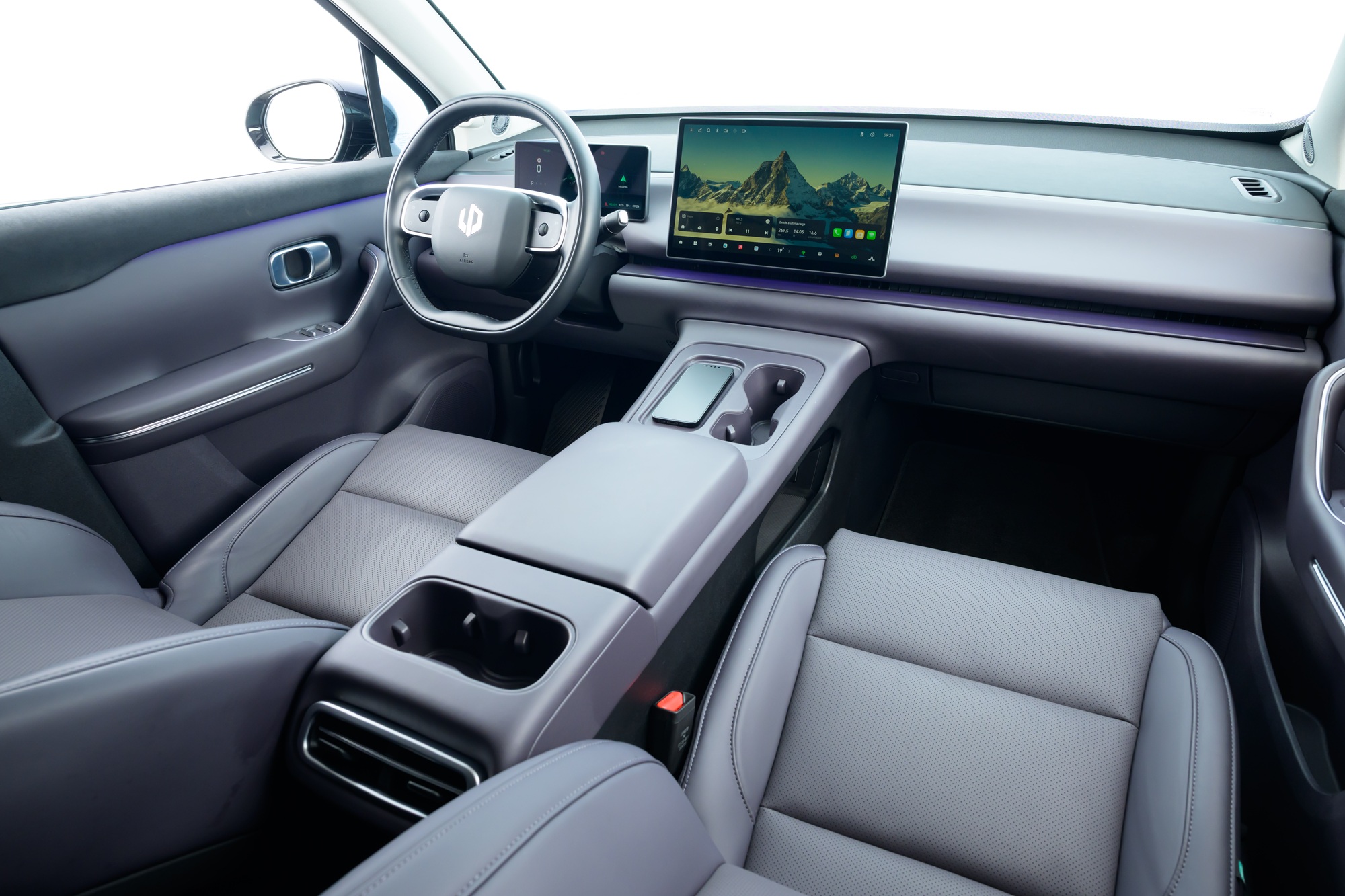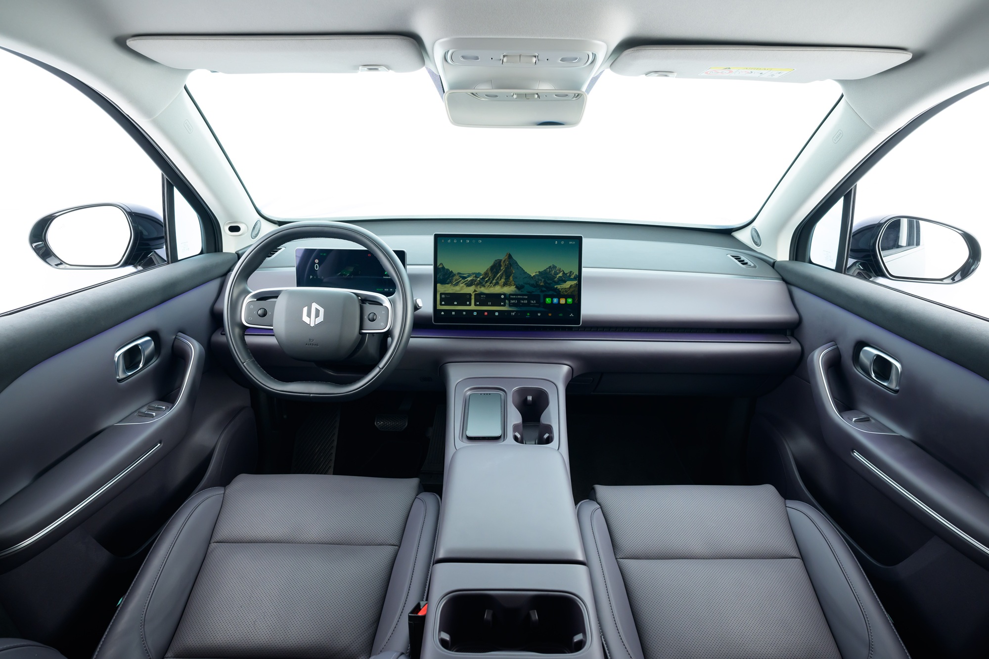 O Leapmotor C10 foi projetado para evitar o excesso de comandos e botões presentes em outros carros da categoria. Nele, todas as funções podem ser monitoradas ou controladas diretamente pela central multimídia Leap One de 14,6 polegadas, incluindo ajustes nos modos de condução, energia, climatização, áudio e cenários personalizados. Abaixo dela, um console central com carregador de indução para celulares embutido é complementado por diferentes compartimentos individuais e dois conectores USB, sendo um do tipo C de recarga rápida.