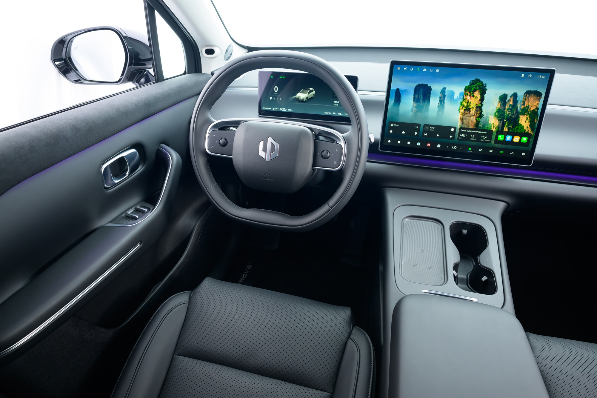 O design marcante da Leapmotor se repete no amplo interior, projetado para criar um conjunto sem excessos e com o máximo de funcionalidade. Esse conceito gera uma sensação de bem-estar que surge em cada detalhe, como o movimento de boas-vindas do banco do motorista, que recua eletricamente por alguns centímetros após a porta ser aberta, retornando à posição memorizada após a entrada do condutor.